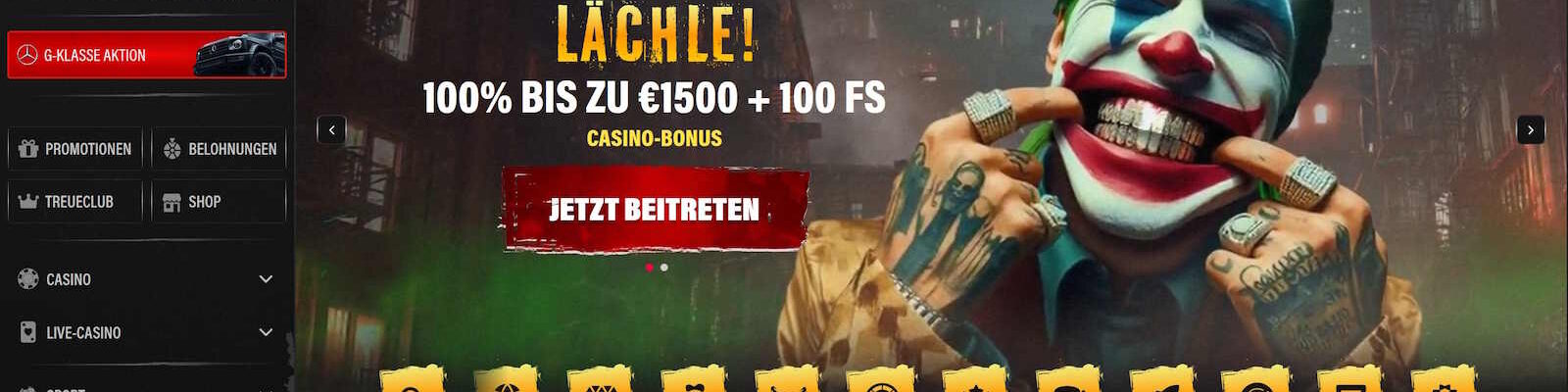 Starten Sie im Jokery Casino mit einem Willkommensbonus bis zu 1500 Euro + 100 Freispielen. Es ist eine Ersteinzahlung ab 10 € notwendig, um am Bonusprogramm teilnehmen zu können.