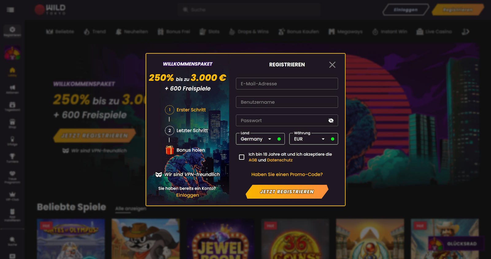 Erleben Sie im WildTokyo Casino das umfangreiche Glücksspielangebot komplett ohne Einschränkungen. Bei uns im Test!