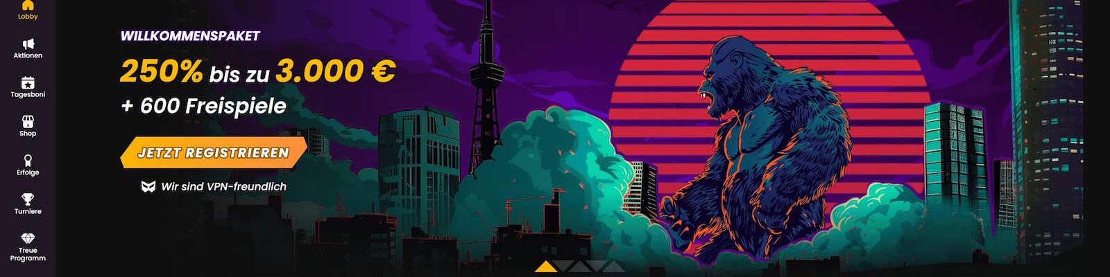 250% bis 3000 € + 600 FS Willkommensbonus